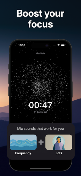 * Choose from ambient sounds and soothing music designed to enhance relaxation and concentration.