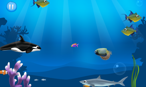 On the bottom of the screen, you can check which fish you might consume at the moment. Your fish will follow your orders and when you tap on the screen, it will move to the tap location. If it finds a fish smaller than itself on its way, it will eat it automatically. Tap the fish!