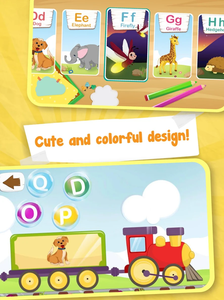 • Letters: Learn and write big and small letters with moving train and nice tune.