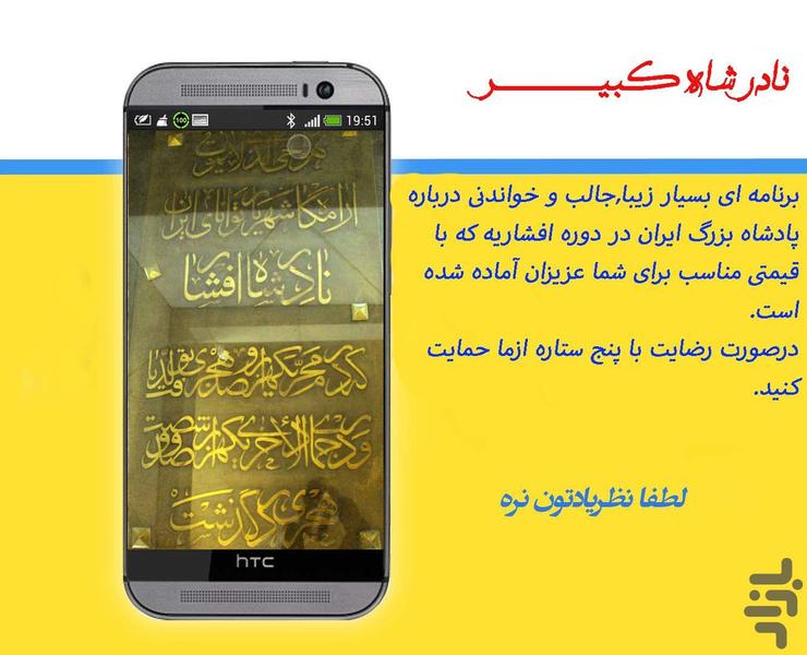 💖💖💖مژده مژده بدلیل استقبال گرم شما عزیزان کافه بازاری برنامه نادر شاه کبیر به نسخه 2.0.0 آپدیت شد(***نکته بسیار مهم*** : برای ارتقا برنامه حتما ابتدا نسخه قدیمی را حذف و نسخه جدید را نصب نمایید تا با ارور متوقف شدن برنامه روبه رو نشوید ) :)💖💖💖