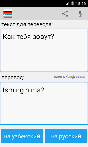 This free app is able to translate words and text from russian to uzbek, and from uzbek to russian.