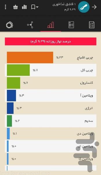 مشاهده نمودار میله ای درصد نیاز روزانه