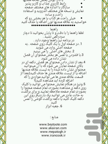 3.با فشردن یا لمس هر بخش محتوای آن فصل نشان داده می شود