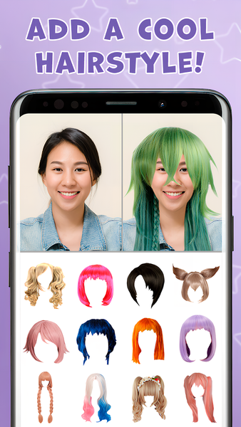 ♡ 30+ anime hairstyles stickers for awesome cosplay hair on photo, pink hair, or blue hair!