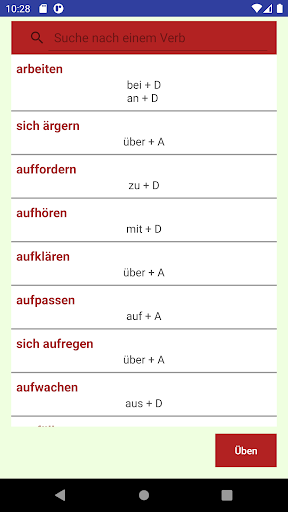 Moreover, you can learn, search, and practice all important German verbs with prepositions. The prepositions need a certain casus, either Akkusativ (A) or Dativ (D), or rarely Nominativ (N).