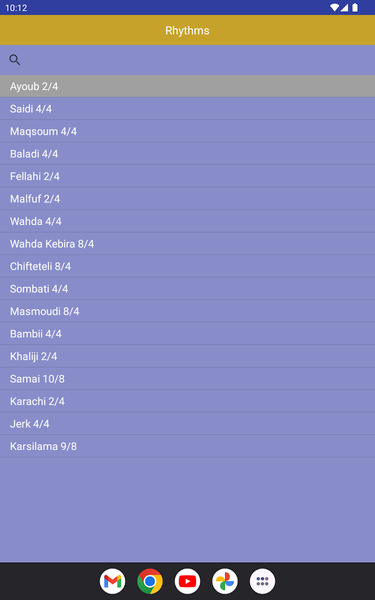 The app also includes a set of popular rhythms as examples. You can also play the rhythm along with the clap sound as a metronome for practicing the tempo.