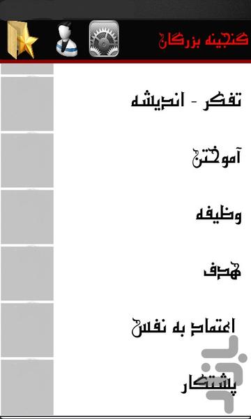 این برنامه شامل گفتار بزگان ، پیرامون موضوعات مختلف در زندگی انسانها می باشد.