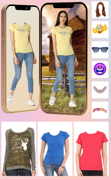 Women t-shirt photo editor is a photo suit app. It has t-shirt virtual dress collection. When you use this app, you will come to know easily within few minutes which color t-shirt will suit to you. This photo banane wala app ko download karo and you will get chance to try many varieties at free of cost.