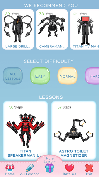 The How to draw skibibi toilet app contains detailed lessons on how to draw the popular cartoon skibibi toilet characters. With easy-to-follow instructions and clear illustrations, you'll quickly master the techniques you need to create your own stunning character illustrations.