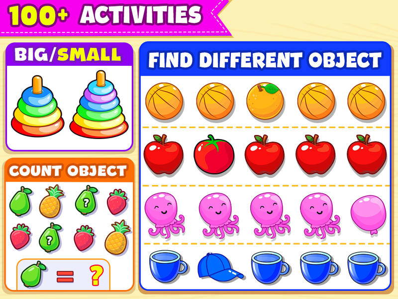 Fun and educational games for toddlers to lean and write a-z alphabets, Pattern, Line and learn Spelling, Colors, Shapes, Vehicles, BodyPart, Animals, General Awareness etc.