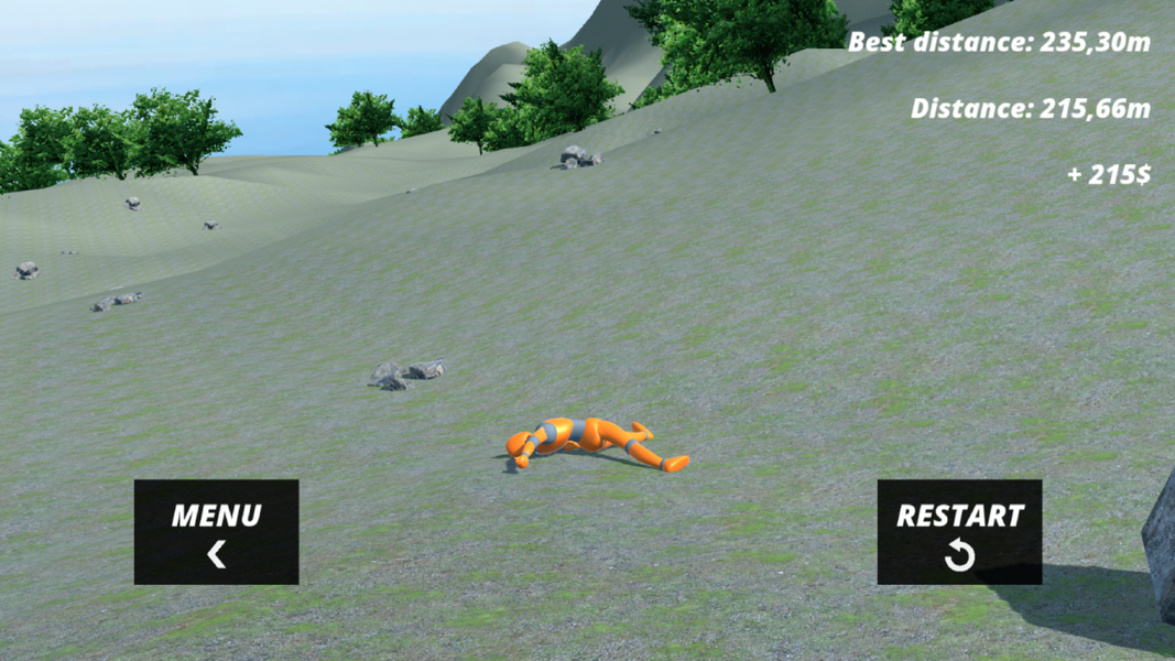 Get as far as possible with the ragdoll! The farther, the more score you will get and the more coins to unlock other motorcycles. If you like motorcycle crash and motorcycle falls but without worrying that no one gets hurt, this is your bike game. Thanks to our ragdoll system, you will have fun crashing the motorcycle and seeing how the ragdoll comes out flying and break bones.