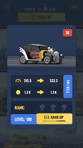 Use the nitro booster to make your cars go faster or use the discount booster to slash the upgrade prices to upgrade your cars for less money. The choice is yours. In Idle Car, you choose the way you play!