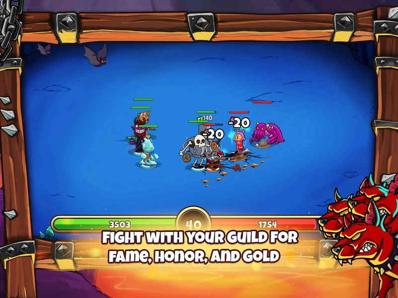 Your mission in this idle fighting game is to seize the power in the dungeon. You'll achieve this by preparing your minions well for battle. As a trainer, you should also advance your own skills. To do this, you'll use the gold you collect through victories in the arena. Idle missions in the tavern also bring you gold. You can use it to upgrade your trainer skills and those of your minions. Afterwards, you fight your way across the dungeon on a map and encounter different enemies. Use your captured resources wisely while training your minions and you'll soon be able to rule over the monsters of the underworld.
