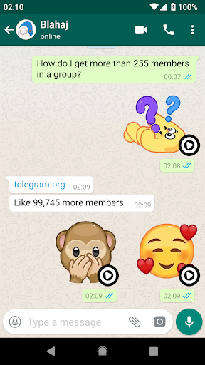 The Telegram stickers in this app are published with permission from Telegram, obtained at stickers@telegram.org