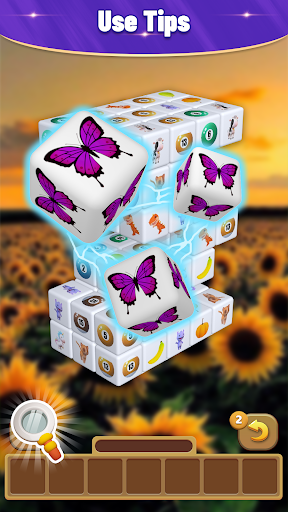 Swipe to rotate the 3D cube, just find and connect three identical objects. Use the HINT button to automatically find a pair. Match the tiles as soon as possible before the time runs out to complete as many levels as possible! Fill up the favorites column and you lose.