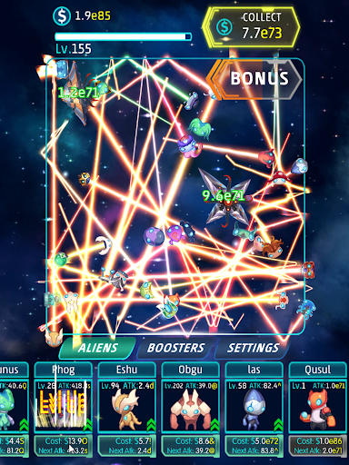Idle Alien is easy. Upgrade your super aliens to destroy invader spaceships faster!