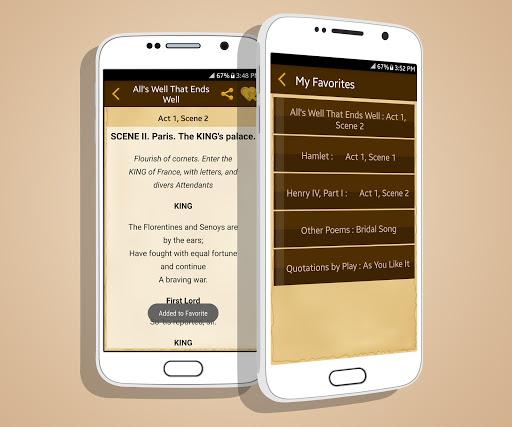 * Favorite - You can easily add any William Shakespeare collection to favorites to read it later.