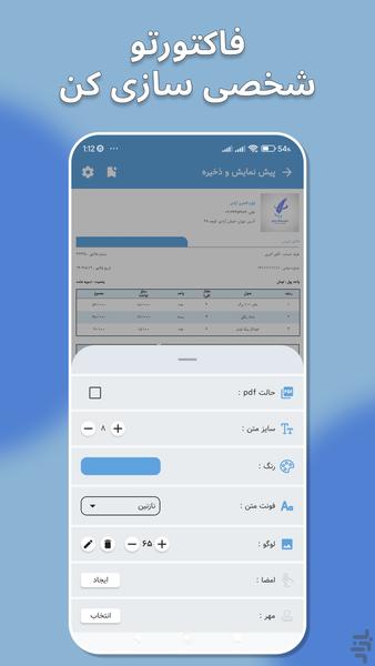• صدور فاکتور در حالت PDF و عکس : فاکتور و پیش فاکتور های خود را به فرمتهای PDF و عکس ذخیره و به اشتراک بگذارید.