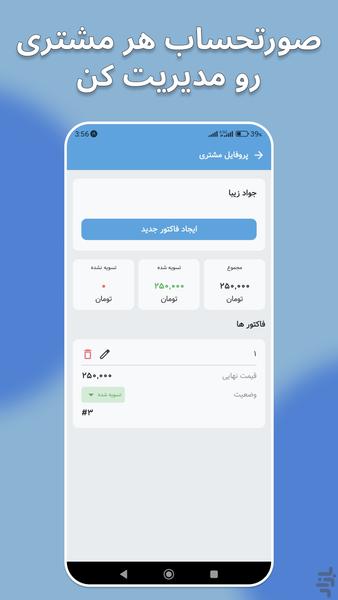 • ذخیره و مدیریت فاکتورها: تمامی فاکتور های خود را در یک مکان ذخیره و مدیریت کنید.