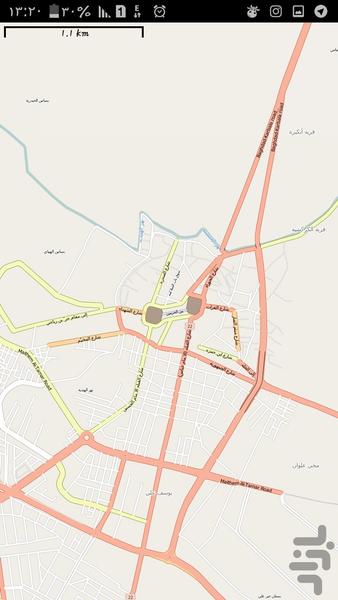 نقشه: نقشه، نمایش دهنده اطلاعات اجمالی از مسیرهای درون شهری و برون شهری کشور عراق می باشد که برای بهره بردن از جزئیات بیشتر(زوم حداکثری) باید محل مورد نظر در هنگام اتصال به شبکه تا انتها زوم شود. در اینصورت در هنگام قطع بودن شبکه نیز آن قسمت از نقشه قابل استفاده خواهد بود.