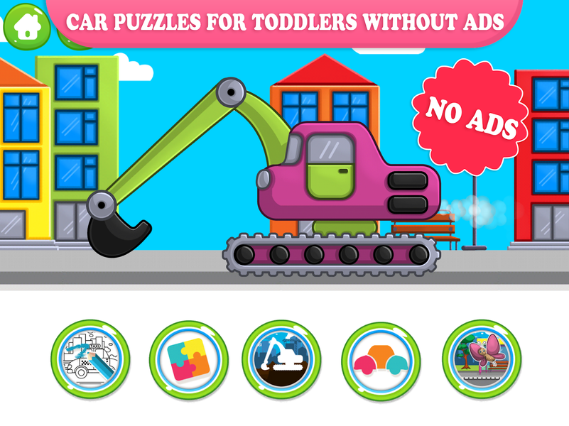 Car Puzzles for Kids is an entertaining and educational app for kids that contains 60 themed tasks and activities with cars: jigsaw puzzles, puzzles, matching shapes, coloring pages, and backgrounds for decoration.