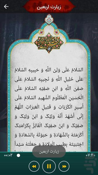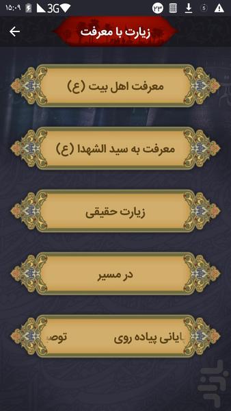5- ادعیه و زیارات : صوت و متن برخی ادعیه و زیارات که در ایام اربعین و در زیارت بقاع متبرکه عراق مورد نیاز است نظیر زیارت اربعین، زیارت امین الله و ... دراین بخش قرار داده شده است.
