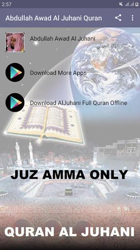 Download this Juz Amma App recitation of sheikh al Juhani and listen to it anytime you want. Requires no streamings or downloads. Just download this App and that's all. Abdullah Awad Al Juhani Quran