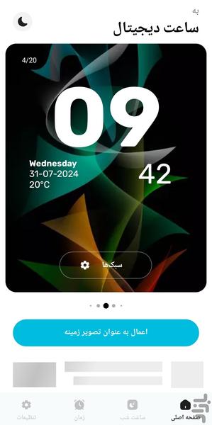 قسمت دیگر این برنامه ساعت شب است که شما می توانید ساعت و سبک مورد نظر را برای مواقع شب با روشنایی خاص تنظیم کنید.