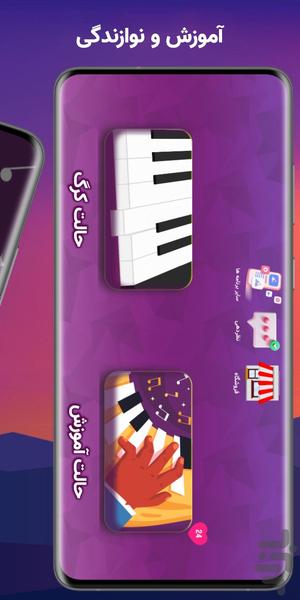 شامل نواختن آهنگ های معروف جهانی و محلی (انگلیسی – ترکی – کردی – فارسی) به صورت قدم به قدم به حالت بازی و سرگرمی است برای اینکه در نهایت بتوانید یک آهنگ را به صورت کامل و مرحله به مرحله یاد بگیرید و در هر مرحله امتیاز بگیرید .