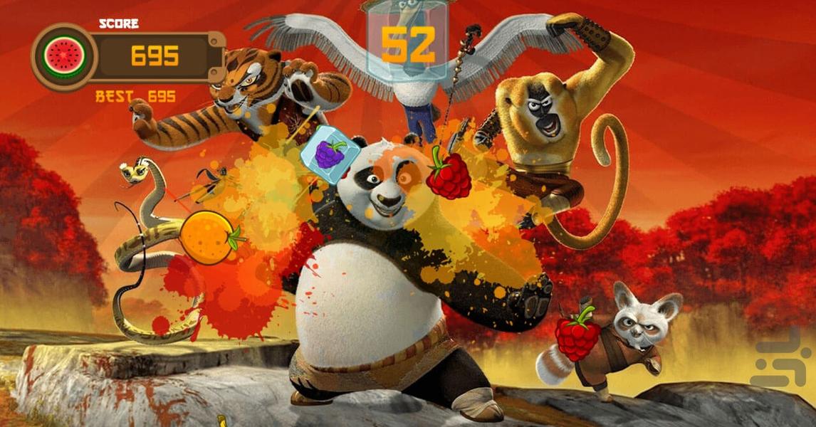 بعنوان پاندای کونگ فو کار با انگشتت میوهها را خرد کن، امتیاز بگیر و لذت ببر