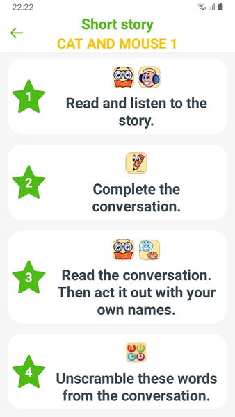 The app's interface is optimized on many different devices, it's simple and extremely easy to use. It contains lots of topics for you to learn and practice. With this interesting "Learn & Speak English Awabe" app, you will have more new words to your vocabulary through fun games in this app. The vocabulary is the basis for speaking and writing skills, so learn and practice it everyday through fun games in the app - an easy way for you to learn foreign languages effectively.