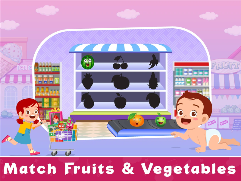 Baby Games: Fun Learning includes addictive games such as a shape game, organizing game, addition game, color sorting game, Image puzzle game, spot the object game, and many more fun learning games and study games.