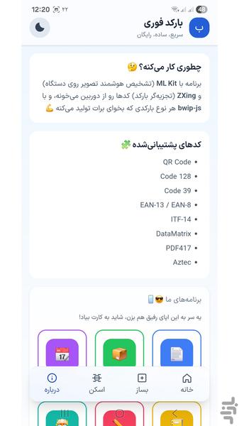 بارکد فوری برنامهای ساده و سریع برای ساخت و اسکن انواع بارکد و QR است.