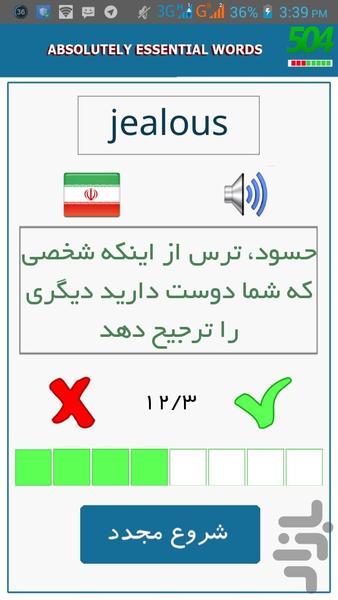 و در صورتی که 5 بار معنی یک لغت را نداند و ضربدر بزند ان لغت به صورت خودکار به بخش لغات سخت اضافه شده و میتواند انجا به مرور انها ادامه بدهد.