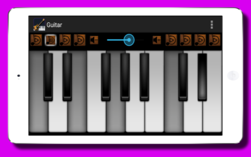 Guitar is the default instrument. You can select the instrument you want to play on the keyboard. Cello, piano, harmonica, flute, trumpet, sitar and acoustic bass instruments are also available in the Preferences menu.