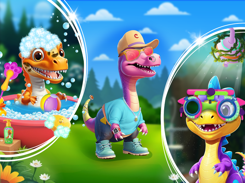 Crazy dinos loves to play with dino and get dressed up for the party.