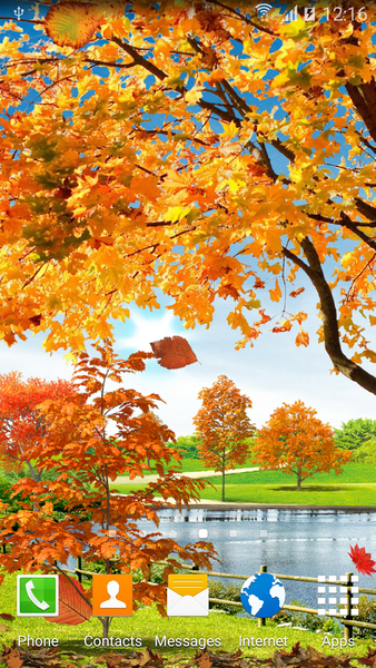 Autumn pond live wallpaper - beautiful animated screensaver with sunny autumn landscape, with live water effect on pond surface, with falling red, orange, yellow 3D leaves, with animated clouds ad much more. Install this free live autumn wallpaper and enjoy all the beauty of the sunny autumn day.