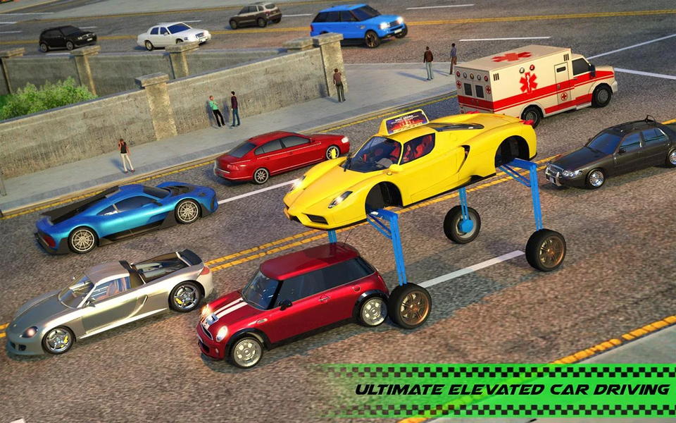 This extreme taxi simulator has an addictive gameplay with real elevated car driving mode. You don't need a driving school to learn taxi driving anymore, download future elevated car simulator and play one of the best driving games ever. Learn elevated car parking, modern driving, future transport driving and be a part of future already. Unlike other taxi games & car games, this elevated taxi simulator includes future driving transport. There are multiple challenging levels in elevated car driving taxi simulator game. Select your favourite customize cars and be the ultimate taxi driver for elevated cars and enjoy extreme elevated car driving and perform your driving duty to unlock more luxurious future elevated cars.