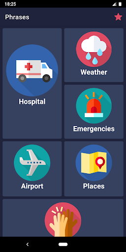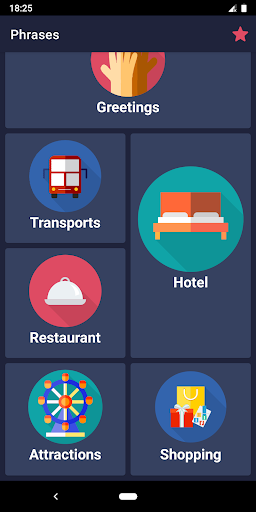 The application provides a selection of essential phrases in several languages that can be used in places like airports, restaurants, shopping malls, hotel, among others.
