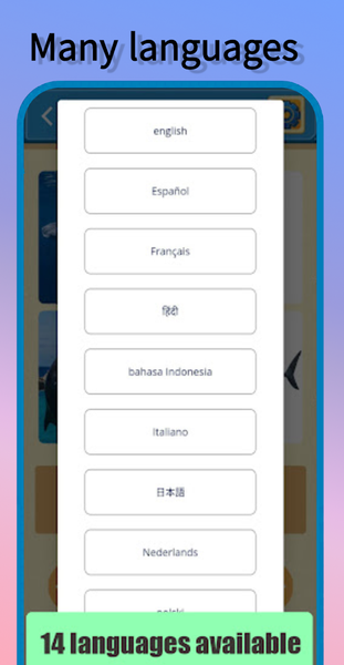 Korean, German, English, Spanish, French, Chinese, Hindi, Indonesian, Italian
