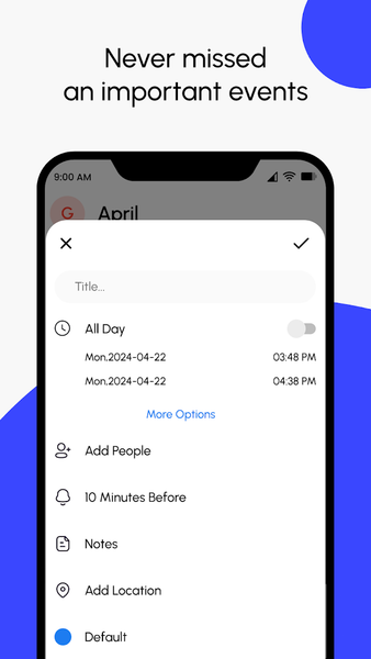 - Set Reminders: Stay on top of your commitments with customizable reminders. Set reminders based on time to ensure you’re always prepared, whether it's a business meeting or a social event.