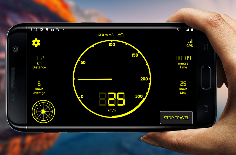 Floating tachymeter included. You can show the speed as a small floating circle above all the other apps, for example above navigation apps.
