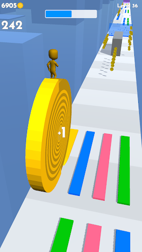 Roll over strips which are the same color as your wheel to stack and grow you bigger! Add more layers to your wheel to unroll further at the end of the level.