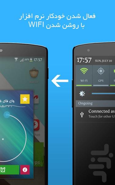 - فعال شدن خودکار نرم افزار ، هر زمان که WIFI گوشی روشن شود. (قابل غیرفعال سازی از تنظیمات)