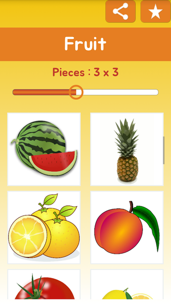 Fruit Jigsaw Puzzle for kids has fruit puzzle pictures with very simple user interface.