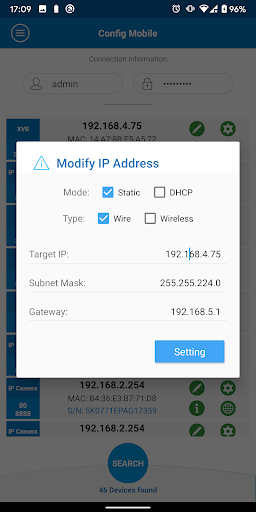 -Search for IP address (ipv4 and ipv6) of IP Camera, DVR, NVR, XVR, PC-NVR devices in the network.