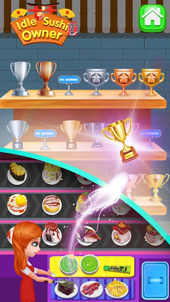 Recently I come to a sushi store and work there. I learn different kinds of food cookings and sushi to meet customers' demand. At the beginning,it is really a big challenge for me because I am not familiar with it. When the customer arrive here,I need to drag the sushi to him or her within due time. Every customer has their own needs and I have to react quickly. When time is over,the customer will leave which means that I probably can't enter the next level Every game level has the specified gold coins I must pay attention to my job. Some customers' sushi need compounding which means dragging two same sushi together. After every game level,I can gain a trophy and several gold coins. Quantities of gold coins can be used to change conditions and scene. It will be more difficult as the game level upgrading. Now I have become adept at it for practice makes perfect. Would you like to have a try?Let's have a look!