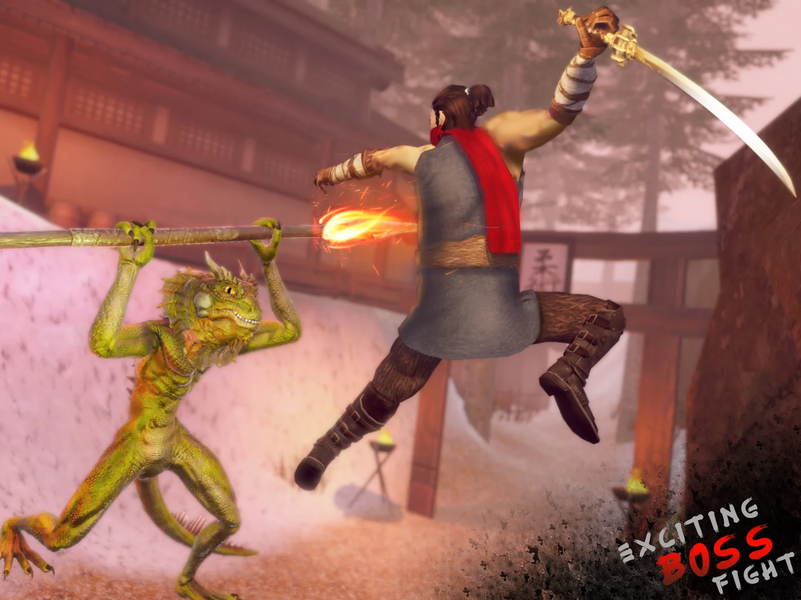 The ninja fighting game is the story of a samurai and a shadow assassin prince who wins the survival from the Arashi disaster. A deadly storm of medieval Japan that was brought by the monsters. Kabuki returns to the kingdom and battles Hanya she is the kurome dragon monster of evil spirits that have black magical powers to control wind and weather. If you have the courage to be a frightening warrior legend and fight with beasts, wolves, spiders and boss battles download and play to enter the world of feudal Japan with excitement, action and adventure. Enjoy the feel of Japan's medieval era. Every step has thrill and fear, play the game and get involved into the living dream, you actually get absorbed into the frightening arashi period. Feel the emotions of an action heroic ninja warrior while attacking with the blades.