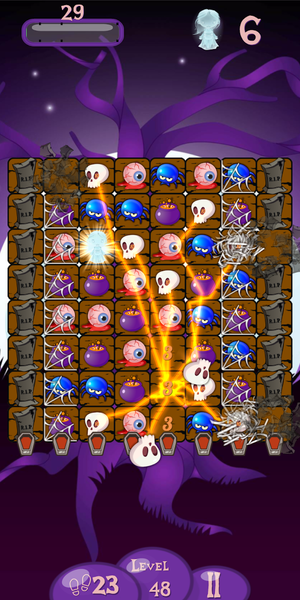 You will have to score the right amount of points, smash all the pumpkins, collect the right amount of chips and help the lonely ghosts rest in peace to successfully complete the level.