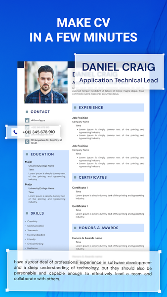 Download our CV Maker - Resume Builder now to take your career to the next level. This free resume maker, resume creator definitely helps you get noticed and get the job easier! If you find this resume builder free useful, please leave positive feedback for us or reach out to our email feedback@volio.vn for any further support